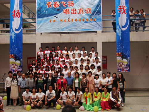 歌声中怀念峥嵘岁月,旋律里演绎学子风采。5月24日下午,由我校学生工作处、团委主办,外语学院团委承办的“乐动青春,献歌河大”第四届河南大学外文歌曲合唱节举行。校党委副书记王凌及学生处、校团委、外语学院相关领导出席活动。