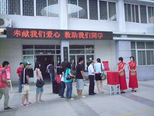 “只要人人都献出一点爱,世界将变成美好的人间”,2012年5月24日下午,动人的旋律响彻河南大学教育科学学院办公楼门前广场,该院师生在此举行募捐仪式,用爱为不幸罹患尿毒症的学子韩柳妍传递生命希望。仪式由学院党委副书记杨江涛主持。