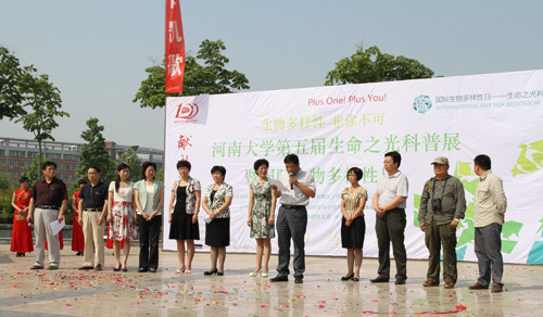 生命科学学院党委书记高如民为开幕式致辞。他说,在生物多样性锐减和环境不断恶化的今天,希望活动能调动同学们保护生物多样性的热情,使生命之光更加绚丽多彩、人与自然更加和谐相处。开封市农林局代表刘琦对我校迎来百年校庆表示祝贺,希望每个人能从小事做起保护环境、保护自然。