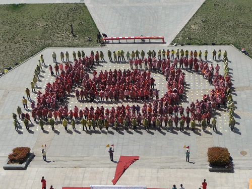 为迎接我校百年华诞,4月13日下午,来自我校工商管理学院的500余名学生“身体力行”,在我校明德广场摆出一幅巨大百年校庆标识图案,以表达对母校的祝福。