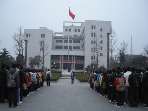 新年伊始,万象更新。2012年2月27日清晨,大礼堂广场庄严肃穆。文学院全体师生在此参加了本学期首次升旗仪式。