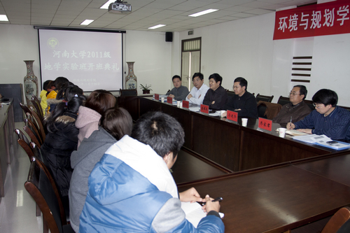 秦耀辰院长在讲话中说,如何培养创新型人才,如何办好地学实验班,环境与规划学院一直在努力探索。他从六个方面列举了学院在办好地学实验班方面提供的条件和资源,即具有国际化和鲜明地域特色的创新型人才培养平台,特别编制的重在提升学生综合素质的培养方案,由省校特聘教授牵头组成的指导教师队伍,重在加强实践环节、培养动手能力的方法设计,经费单列,用于创新型人才培养的外部资源和专门提供的学习条件等,表示学院将在总结地学实验班教学管理经验的基础上,集中人力、财力和物力,在培养未来能够成为地学领军人物的后备人才方面做出更大努力。