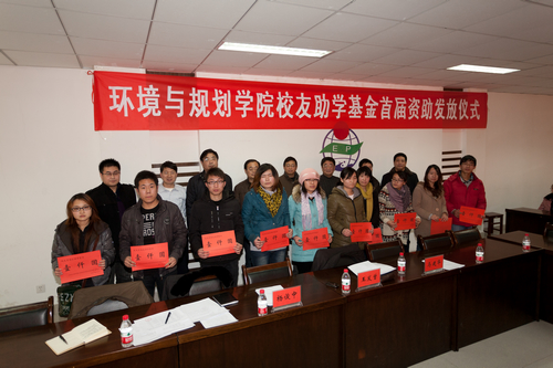 2012年1月5日下午,环境与规划学院校友助学基金首届资助发放仪式在学院二楼会议室举行,学院老中青三代校友代表和部分院领导出席仪式。