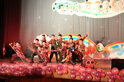 12月21日晚,人民武装学院成功举办了“炫动青春、放飞2012”迎新年文艺晚会,河南大学纪委书记雷霆及学生处、团委有关负责人与学院全体师生一同观看了本场晚会。晚会形式多样,歌曲、相声、武术、小品等各种节目异彩纷呈,不仅给全院教职员工和学生带来了欢声笑语,更体现了人武学子们青春激扬的风采。 近年来,人民武装学院坚持以建设优良的教风、学风为核心,以优化、美化校园文化环境为重点,以丰富多彩、积极向上的校园文化活动为载体,大力加强校园文化建设,极大的丰富了学生的课余文化生活。