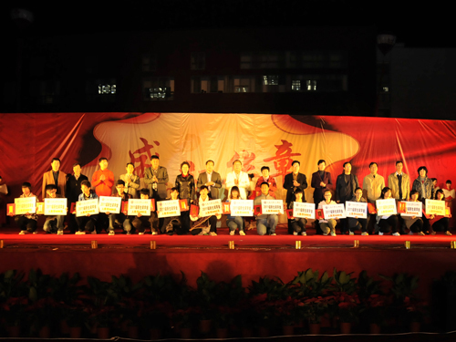 2011年10月25日晚6时许,彩菊飘香,星光璀璨,金明校区马可广场上,华丽的舞台下涌动着万余观众,大家怀着异常激动的心情期待着民生学院2011年迎新暨颁奖晚会的开始。学校常务副校长赵国祥、校党委副书记王凌,组织部、宣传部、学工部、保卫处、教务处、团委有关负责人,民生学院党政领导、教师和3600余名新生参加晚会并观看了文艺演出。颁奖晚会由民生学院党委书记王国庆主持。