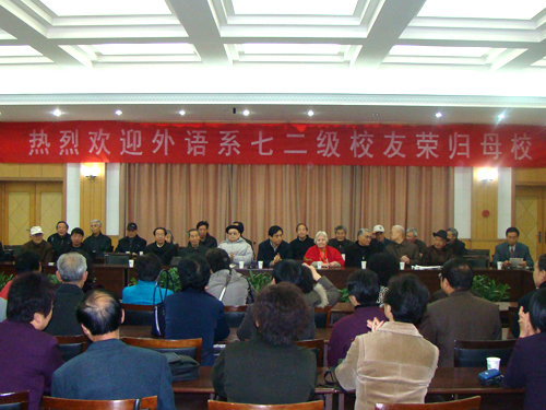 3月30日上午,明伦校区新行政楼第四会议室内热情洋溢、笑声不断,我校外语系七二级校友在阔别母校三十四载之后,再回河大,共叙当年师生之情。河南大学校长关爱和,河南大学原副校长、外语学院原系主任李泽民,外语学院有关领导和吴雪莉、刘炳善等二十余名教师代表出席座谈会。