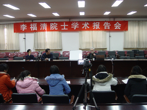 报告会上,李福清院士回顾了自己五十多年来对中国民间文学进行研究的历程。李福清院士谈到研究中国民间文学的起缘时说,他第一次到中国来就被中国丰富的民间文化吸引住了,回国后就开始对中国民间四大传说进行研究,写出了《孟姜女传说》等学术作品。1965年,李福清院士到北京大学进修,开始研究历史小说《三国演义》与民间文学的关系。他就此时期的研究成果,分别从作者的思想、母题对比、人物描写、叙事结构等几个方面系统地讲述了自己独特的研究方法。随后,李福清院士讲了关于中国神话和年画的研究。