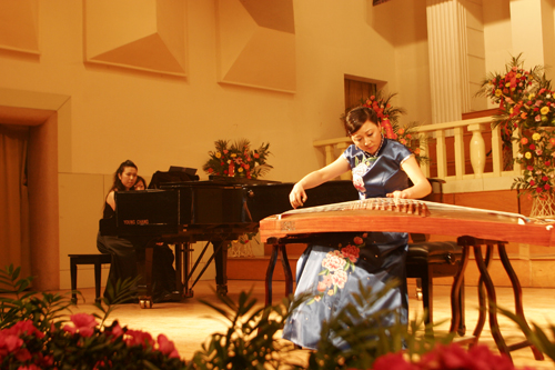 1月8日晚,我校艺术学院音乐厅座无虚席,经过精心筹备的“枫桥夜泊”金亚迪古筝独奏音乐会拉开帷幕。音乐会上,金亚迪老师演奏了《蕉窗夜雨》、《傩》、《云裳诉》、《林泉》、《枫桥夜泊》等不同风格和流派的古筝独奏作品,并和自己的学生合作演奏了《雪山春晓》古筝协奏曲。优雅的旋律、美妙的音乐为现场观众献上了一道完美的音乐文化大餐。