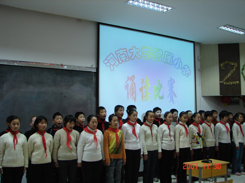 近日,附属小学围绕十七精神,组织开展了“歌颂十七大 创和谐校园”诵读比赛。这次活动,共有150多位学生踊跃参加。小选手们在精心准备的基础上,饱含激情地诵读了《十七大颂歌》、《祖国,我亲爱的祖国》、《琵琶行》、《七律 人民解放军占领南京》、《囚歌》、《乡愁》、《飞来吧,台湾的鸽子》、《跨越海峡的生命桥》、《我们是同学》等几十篇经典诗文、优美文章,培养了学生的爱国主义精神,提高了学生的阅读兴趣和朗诵水平,激发了学生的求知欲望,丰富了学生的语文素养。经过激烈的比赛,最终产生了一等奖12个,二等奖23个,三等奖26个。