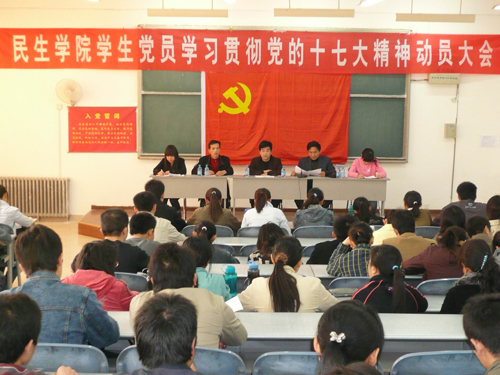 高举中国特色社会主义伟大旗帜,坚持科学发展观,使全院师生的思想统一到党的十七大精神上,近日,民生学院积极展开学习贯彻党的十七大精神系列活动。