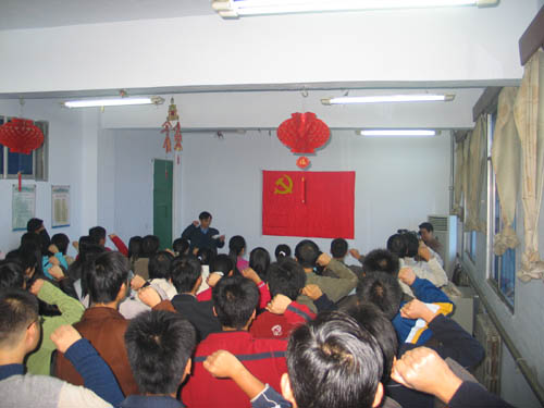 “我志愿加入中国共产党,拥护党的纲领,遵守党的章程,履行党员义务,执行党的决定,严守党的纪律……”10月13日上午,我校哲学与公共管理学院的会议室里气氛庄严肃穆,该院部分教工和学生党员代表在院长王德军的带领下,在党旗前,再次举起右手,重温入党誓词,以这种特殊的方式表达自己热盼十七大召开的喜悦心情和做好我校本科教学工作水平评估工作的决心。