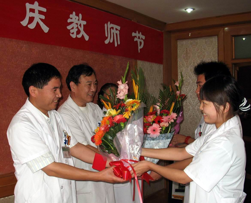 2007年9月8日上午,东京临床学院二楼会议室洋溢着节日的气氛,学院领导、教师代表、临床实习的全体同学及相关职能部门负责人欢聚一堂,共庆教师节。