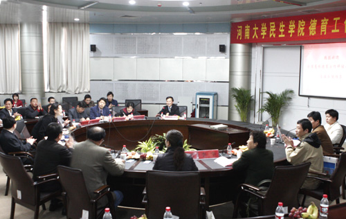 2007年4月3日至4日,河南省德育工作评估专家组一行6人莅临河南大学民生学院,对学院的德育工作进行实地考察指导和全面评估。校领导郑邦山、王发曾、孟庆琦等分别随同评估专家组进行考察。
