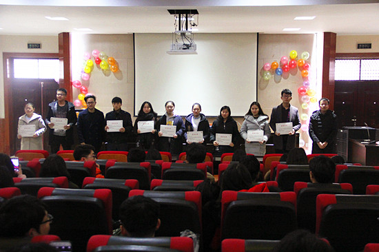 在两轮的积分赛后,参赛队伍取得了优秀的成绩,12月1日中午,商战模拟大赛颁奖典礼经济学院举行,经济学院团委老师申永防老师给经济学院九支成绩特别优秀的队伍颁发获奖证书,其中宋丙艳等同学荣获一等奖,李琛等同学荣获二等奖,刘芸瑞等人荣获三等奖。