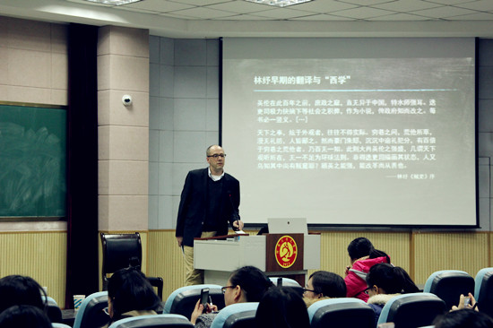 12月13-22日,美国威廉玛丽学院Michael Hill(中文名:韩嵩文)教授在文学馆二楼报告厅做了“美国高等教育与文科的未来”“清末文学与《一千零一夜》的翻译”等五场讲座,文学院、新闻与传播学院、国际教育学院部分师生参加了此次活动。讲座由文学院副院长王宏林主持。