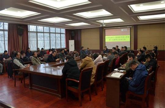3月1日下午,法学院在学院二楼会议室召开全体教职工会议,传达学习学校2018年工作会议精神,安排部署新学期开学工作。会议由院长蔡军主持。