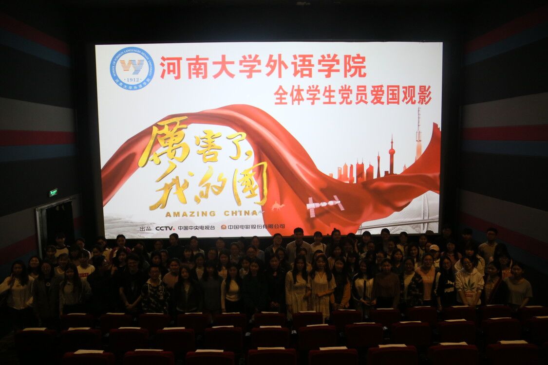 为深入贯彻学习十九大精神,了解祖国的发展和成就,加强对学生党员的政治思想教育,3月29日下午,外语学院开展主题党日活动,组织全体学生党员及入党积极分子观看电影《厉害了,我的国》。