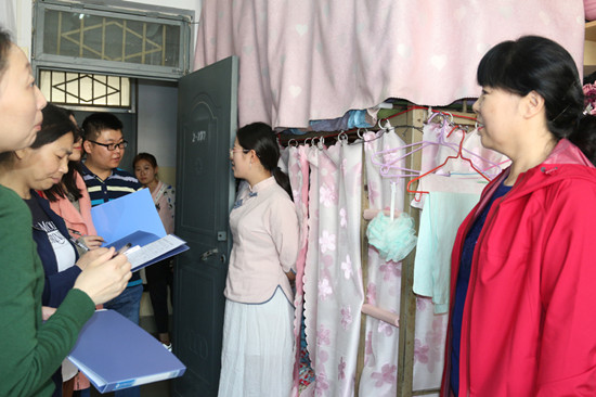 2018年4月2日上午,欧亚国际学院党委副书记楚艳霞带队深入仁和学生仁和公寓1B、2号楼、仁和餐厅楼学生宿舍开展安全卫生工作大检查,学生工作办公室全体成员参加检查。