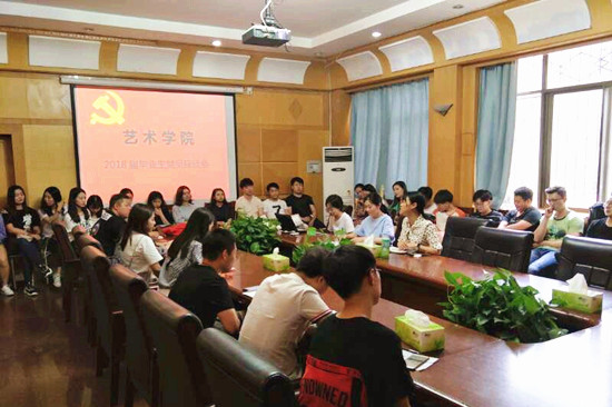 5月29日下午,艺术学院2018届毕业生党员座谈会在艺术学院一楼会议室成功举行,艺术学院党委副书记刘迎红,党委办公室主任马利霞和2018届73名本科毕业生党员参加了此次座谈会。座谈会由艺术学院本科生第二党支部书记、2018届毕业生辅导员靳利粉主持。