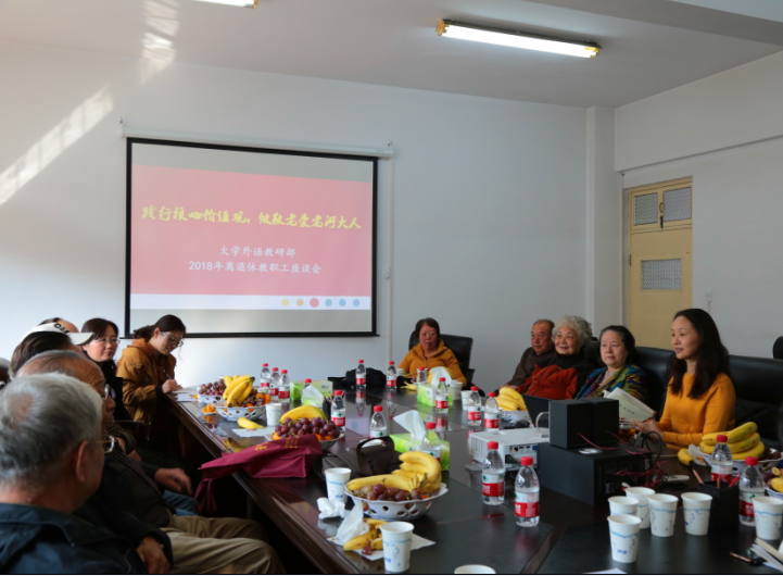 10月19日上午,大学外语教研部离退休教职工座谈会在外语部小会议室举行。会议由大学外语教研部党总支书记、主任关合凤主持,15名离退休教职工和部领导班子出席座谈会。