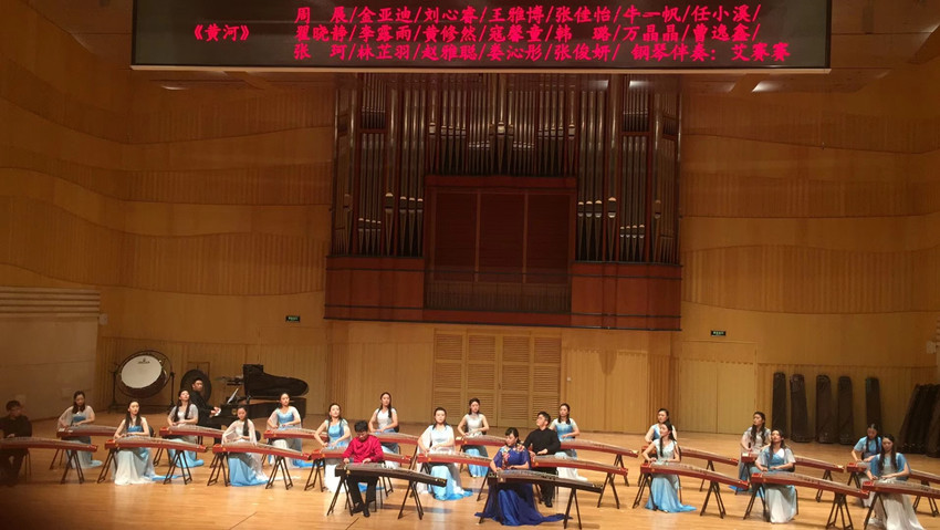 音乐会最后,在全场观众的热烈掌声中,至善筝团艺术指导周展与金亚迪联袂登场,带领全体演员共同为大家奉献了一曲气势磅礴的《黄河》。曲目由周展改编,取材于《黄河协奏曲》,用古筝重奏的形式重新演绎红色经典音乐作品。乐曲保留了《黄河船夫曲》《黄河谣》《保卫黄河》三个乐章,通过钢琴和古筝等乐器的协奏,旋律激扬慷慨,如惊涛骇浪,营造出庄严肃穆和催人奋进的音乐气氛,在表现黄河波澜壮阔的气势的同时,展现出中华民族自强不息的精神风貌,将音乐会推向高潮,现场掌声经久不息,音乐会取得圆满成功。