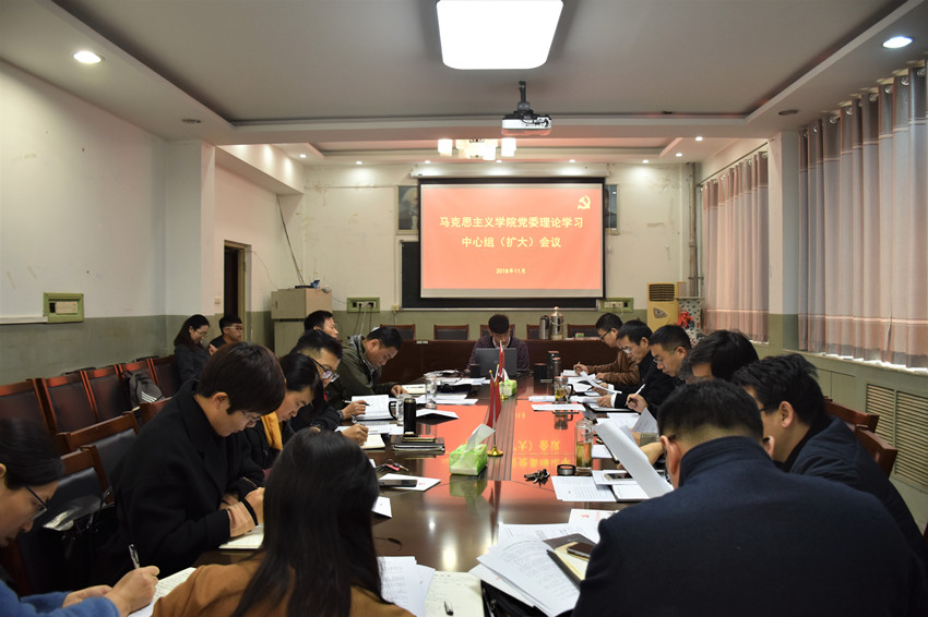11月27日上午,马克思主义学院党委理论学习中心组扩大会议在院三楼会议室召开,院党委委员、全体支部书记与会,会议由学院党委书记杨光辉主持。