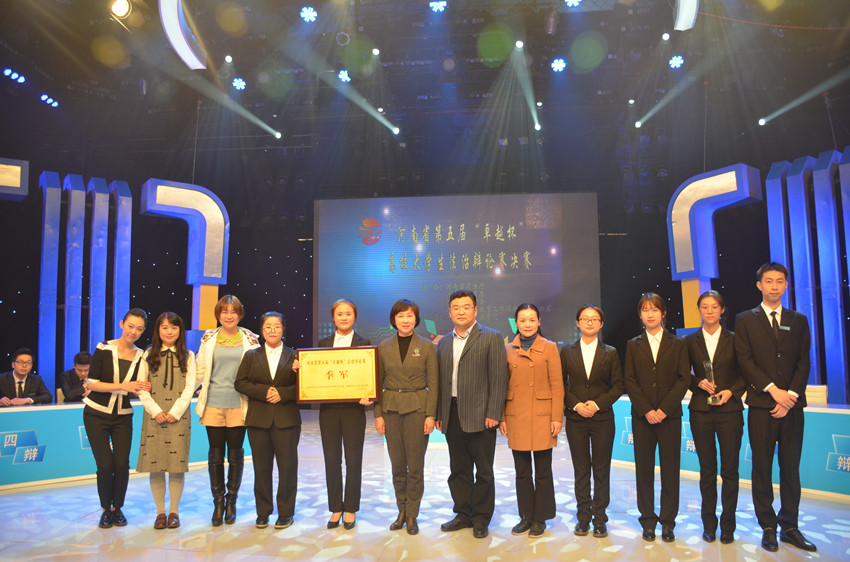 11月27日,由河南省司法厅、河南省教育厅、河南省法学会、河南省普法教育工作领导小组办公室主办,我校 法学院承办的第五届“卓越杯”法治辩论赛决赛在河南广播电视台演播厅举行。省委外宣办主任赵云龙,省司法厅厅长申黎明,省法学会副会长谢德安,省人民检察院副检察长田效录,省公安厅副厅长张会中,省高级人民法院副巡视员王凤兰,省教育督学、省教育厅副厅级干部李敏,校党委常委、工会主席沈洁霞和河南师范大学党委常委、副校长马治军到现场观看了比赛并为获奖单位选手颁奖。