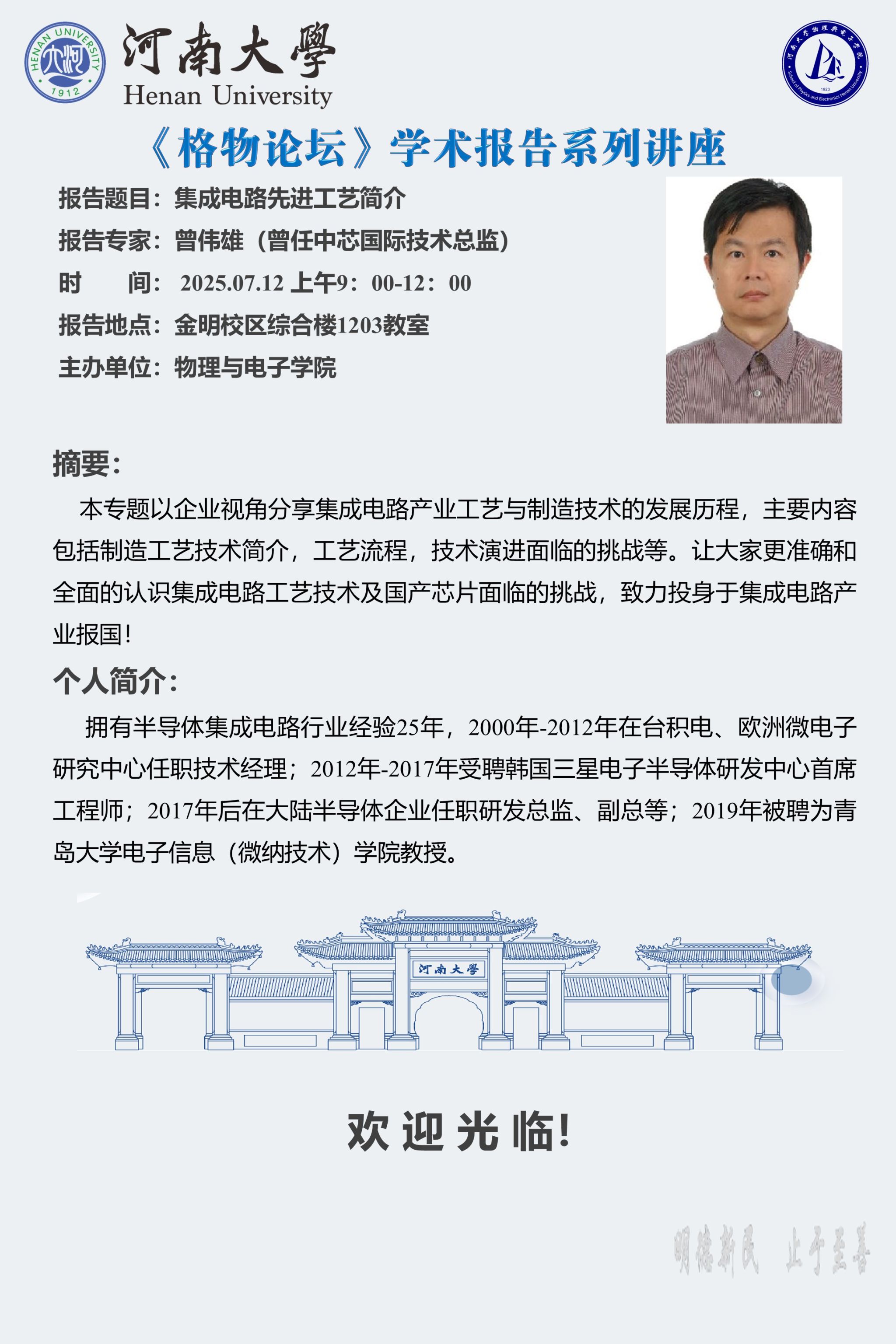 曾伟雄:集成电路先进工艺简介(时间:7月12日)