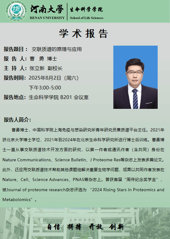 曹勇:交联质谱的原理与应用(时间:8月2日)