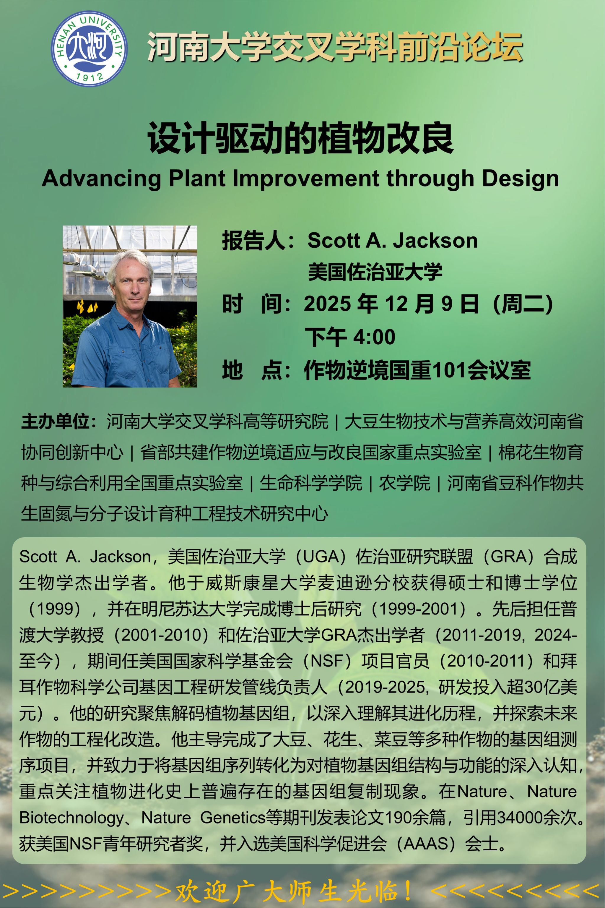 Scott A. Jackson:Advancing Plant improvement through Design(时间:12月9日)