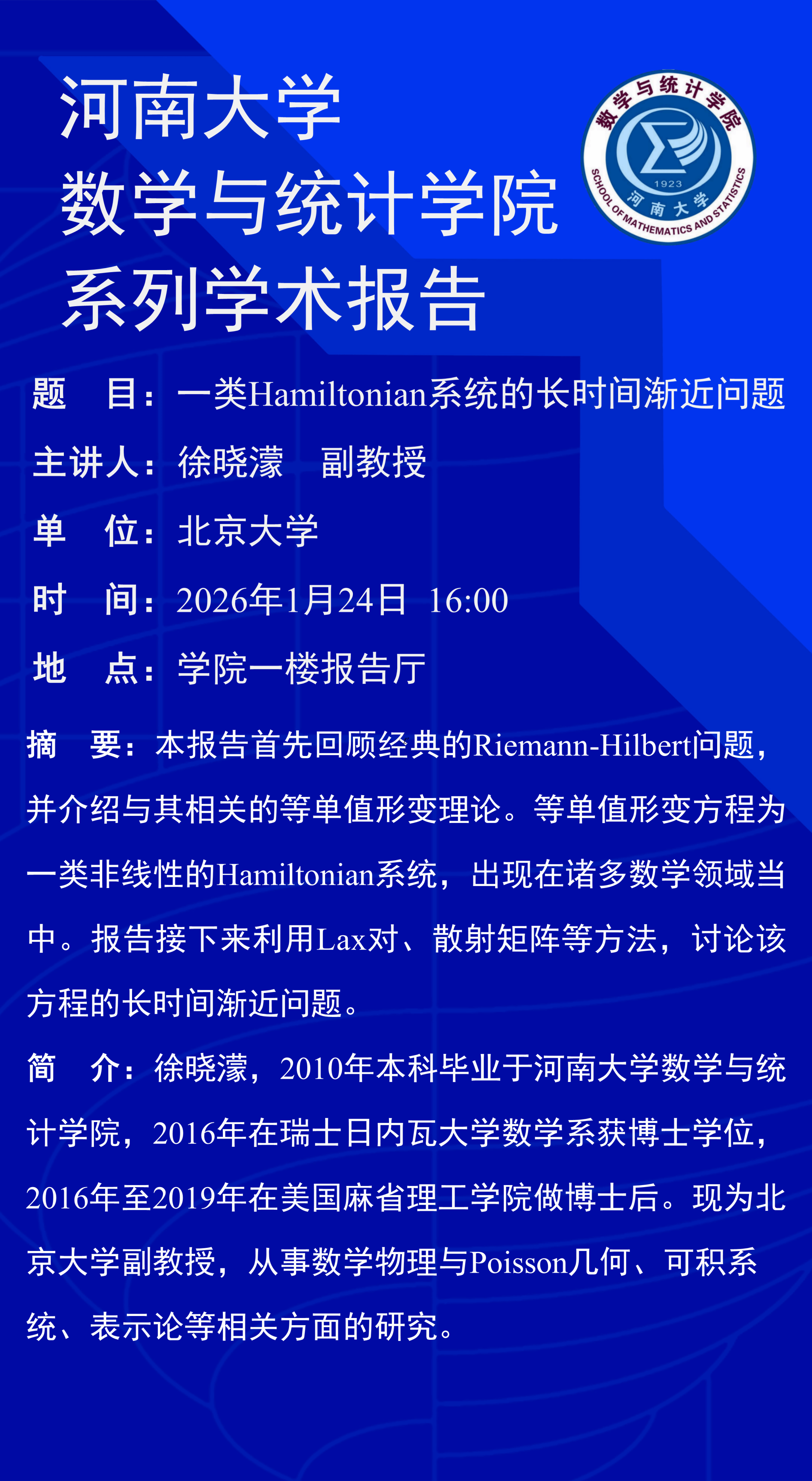 徐晓濛:一类Hamiltonian系统的长时间渐近问题(时间:1月24日)