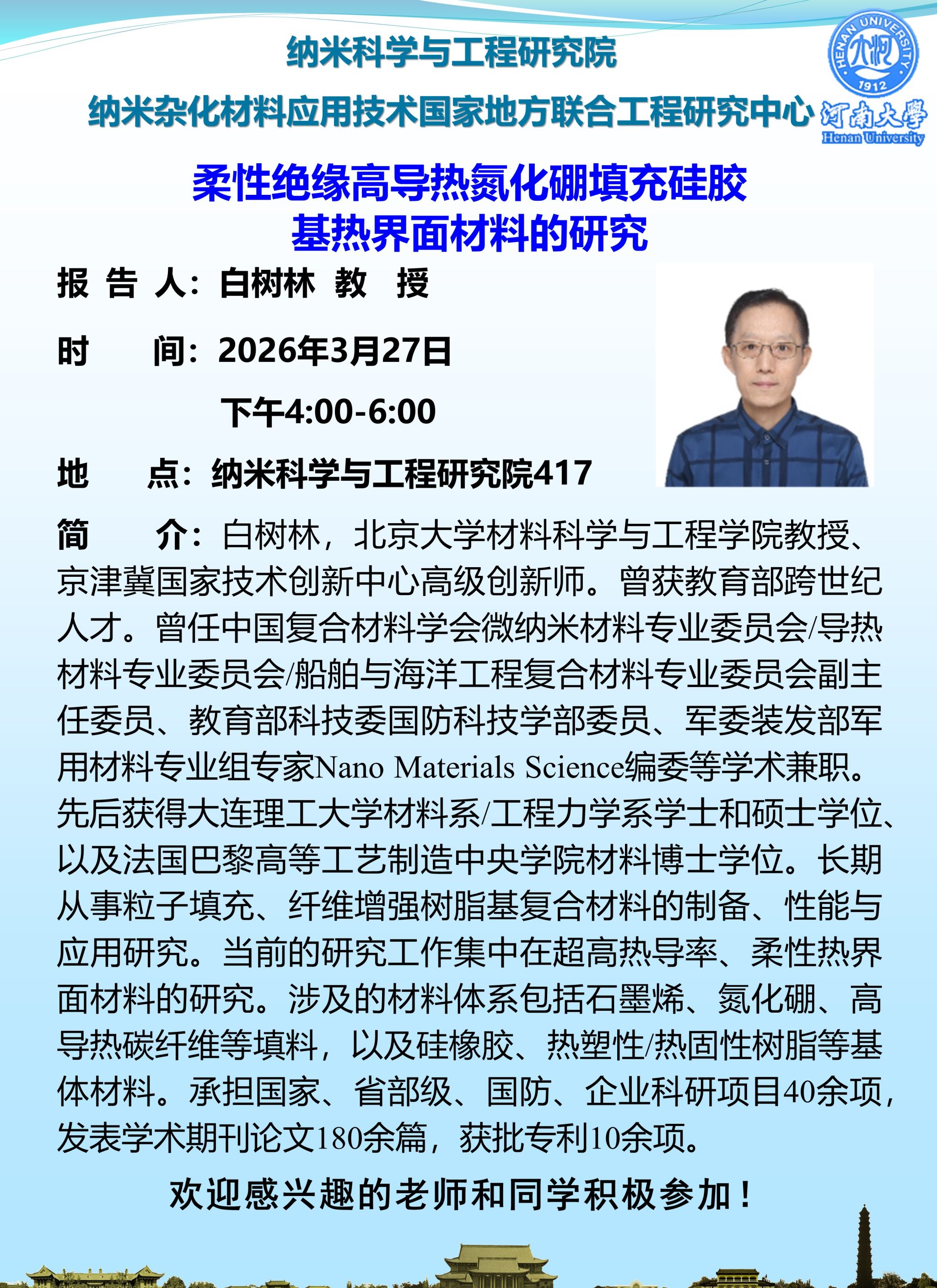 白树林:柔性绝缘高导热氮化硼填充硅胶基热界面材料的研究(时间:3月27日)
