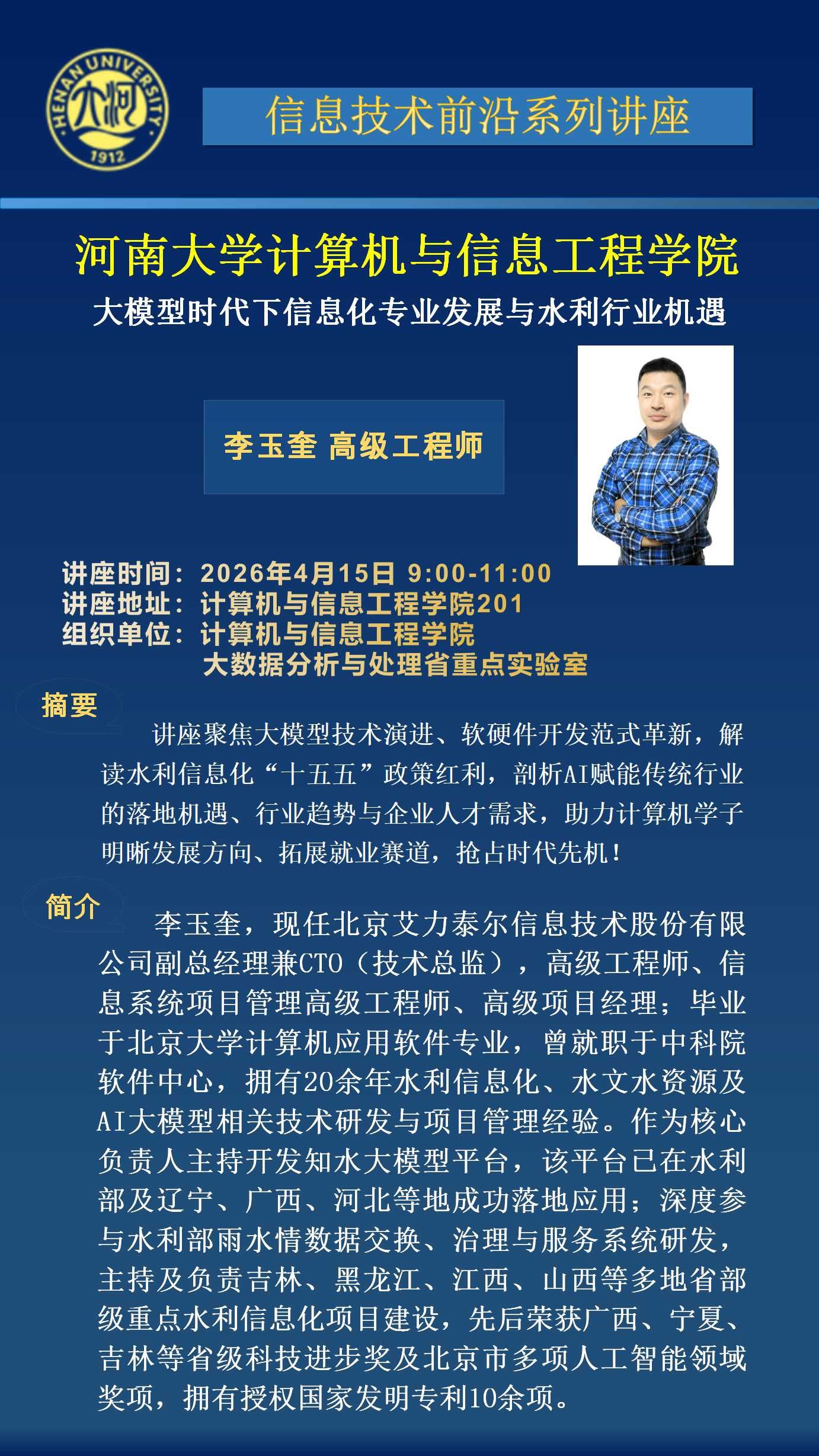 李玉奎:大模型时代下信息化专业发展与水利行业机遇(时间:4月15日)