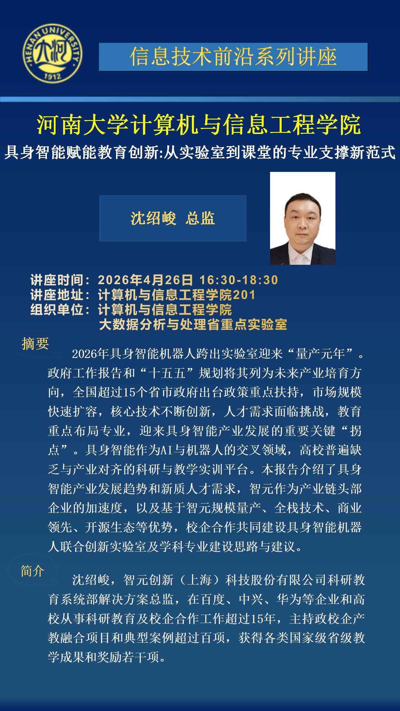 沈绍峻:具身智能赋能教育创新_从实验室到课堂的专业支撑新范式(时间:4月26日)
